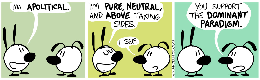 Apolitical is a paradox. We are implicitly taking a political stance when we choose to be apolitical.